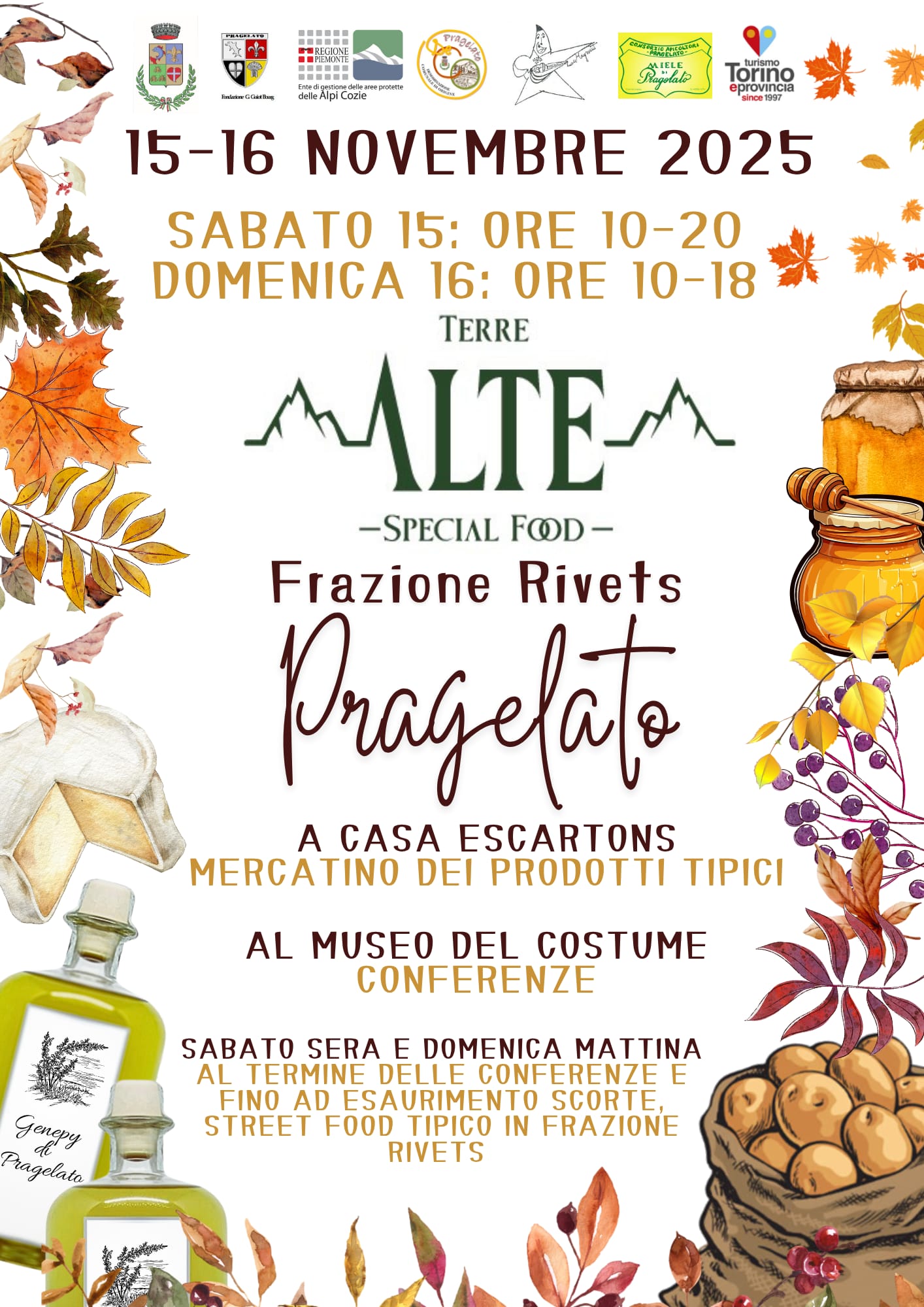 Sabato 15 novembre dalle 10 alle 20 e Domenica 16 novembre dalle 10 alle 18 a Pragelato in Frazione Rivet si svolgerà la manifestazione Terre Alte Special Food