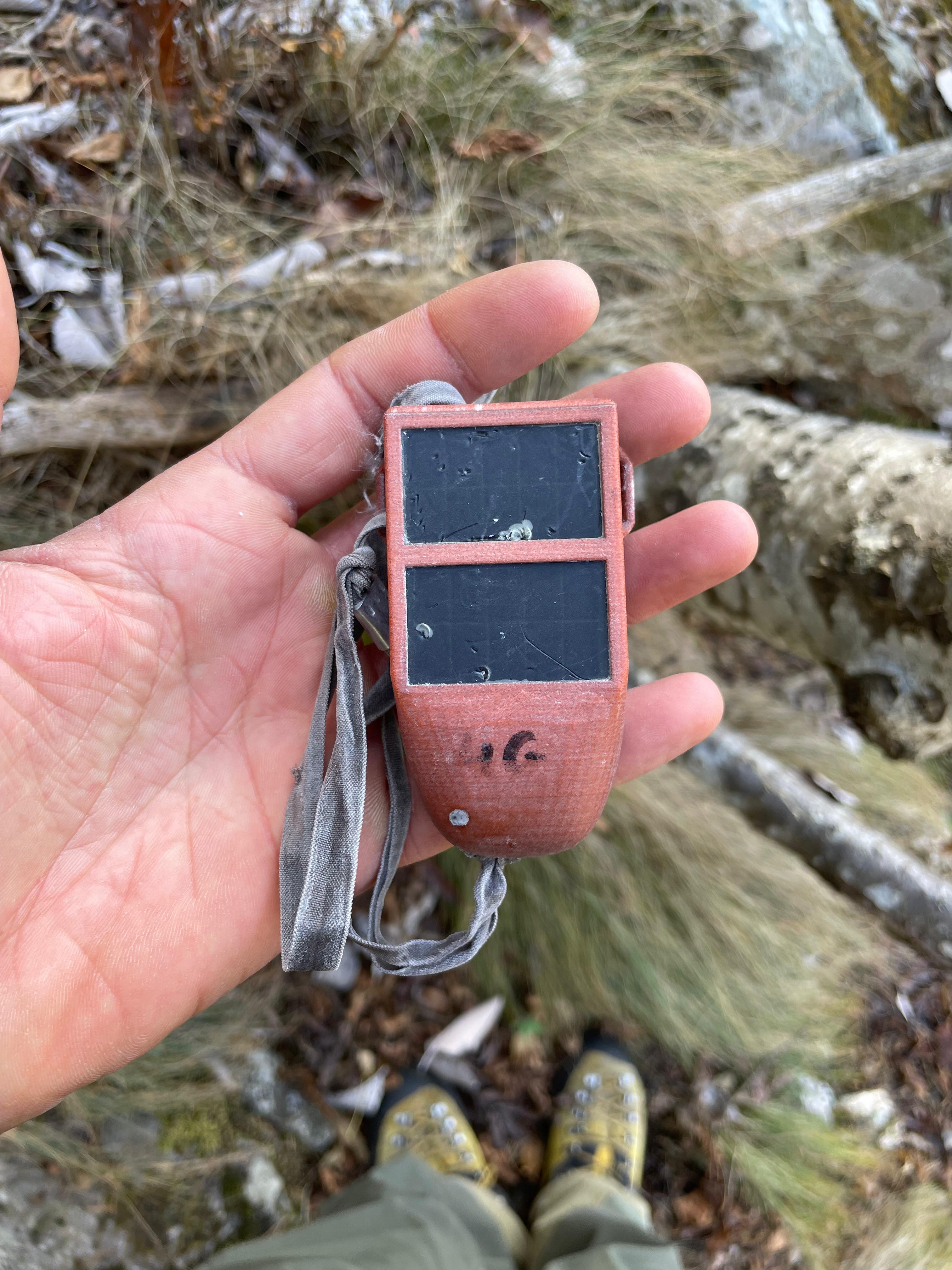 Nei giorni successivi i guardiaparco Perron e Cellerino coordinati da Roux Poignant si sono recati nella zona individuata dal gps e grazie a un incrocio di dati e una buona dose di intuito, restringendo sempre più l'area di ricerca, sono riusciti a ritrovare tra le foglie il piccolo emettitore.