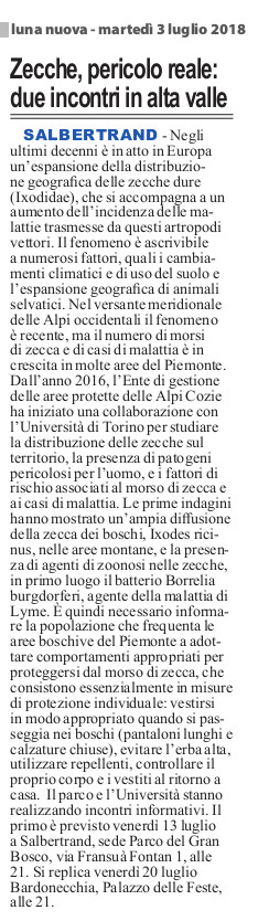 Zecche, pericolo reale: due incontri in alta valle