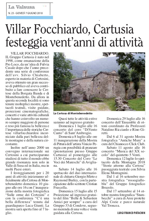 Villar Focchiardo, Cartusia festeggia vent'anni di attività