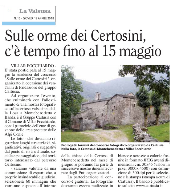 Sulle orme dei Certosini, c'è tempo fino al 15 maggio