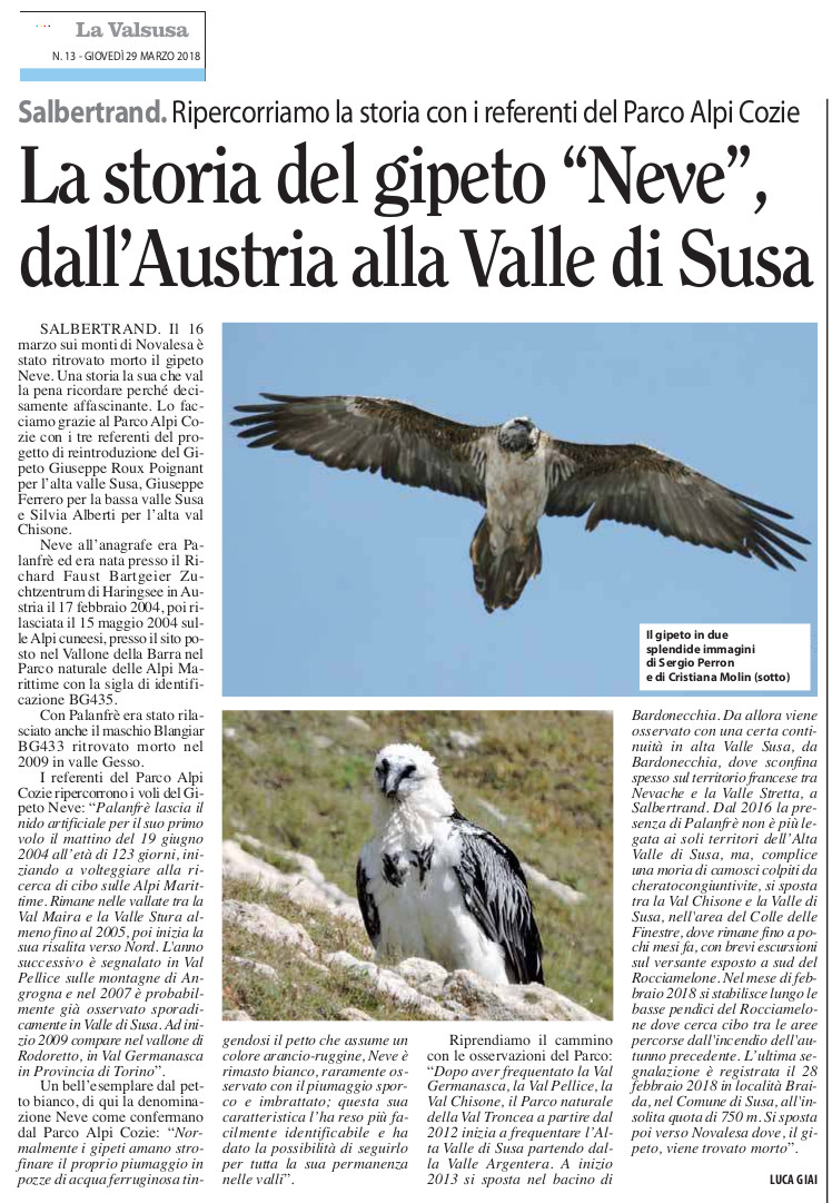 La storia del gipeto "Neve", dall'Austria alla Valle di Susa