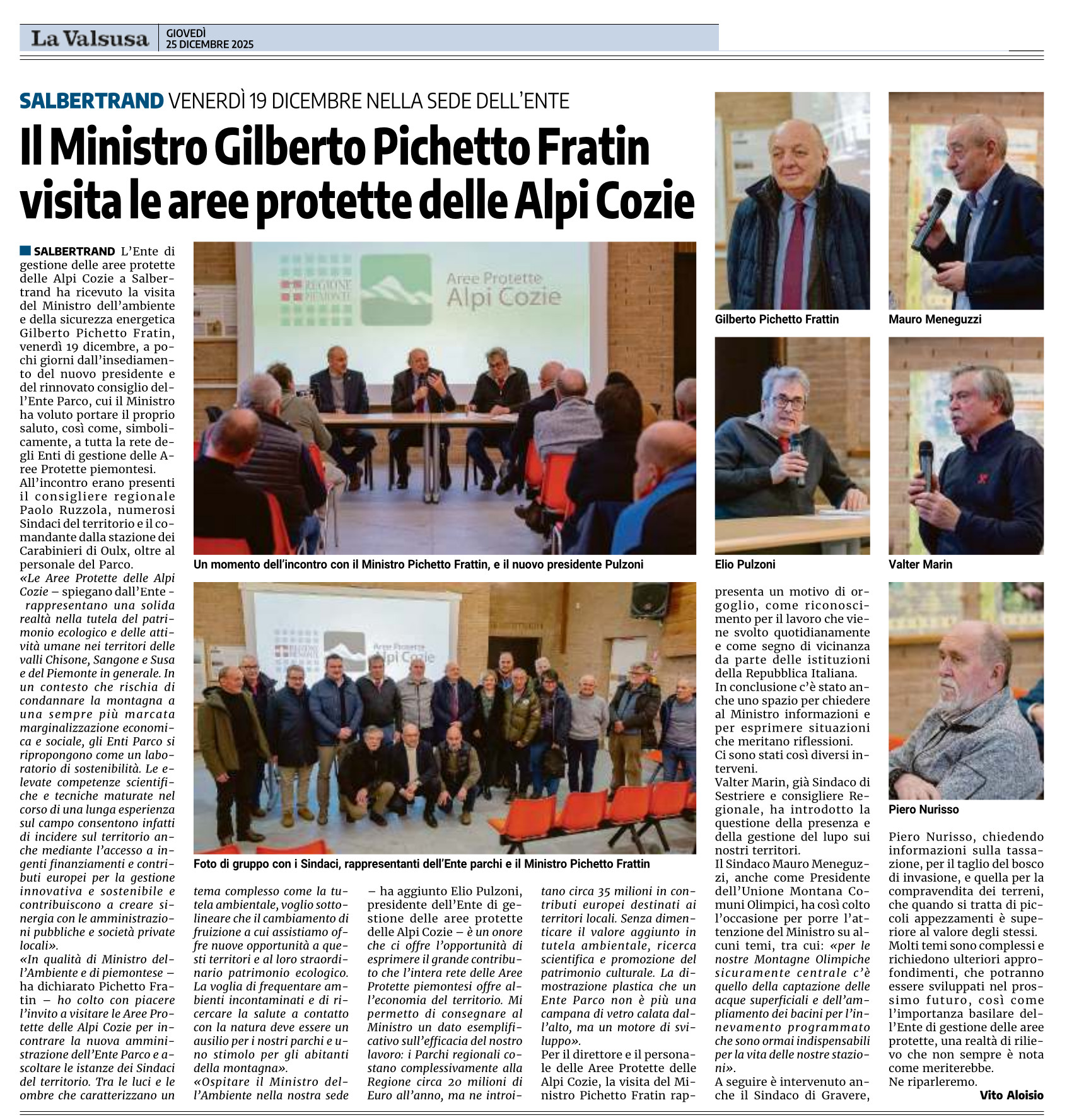 Il Ministro Gilberto Pichetto Fratin visita le aree protette delle Alpi Cozie