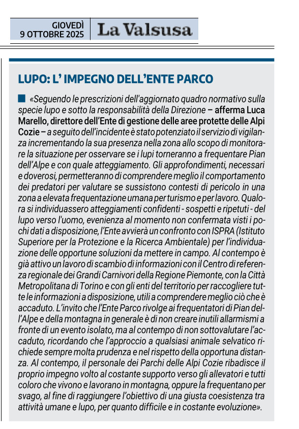 Lupo: l'impegno dell'Ente Parco