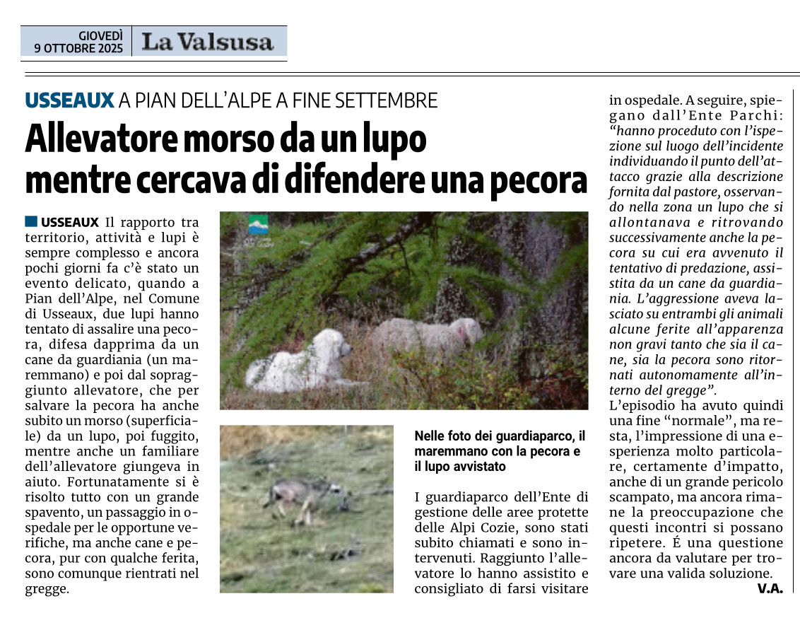 Allevatore morso da un lupo mentre cercava di difendere una pecora