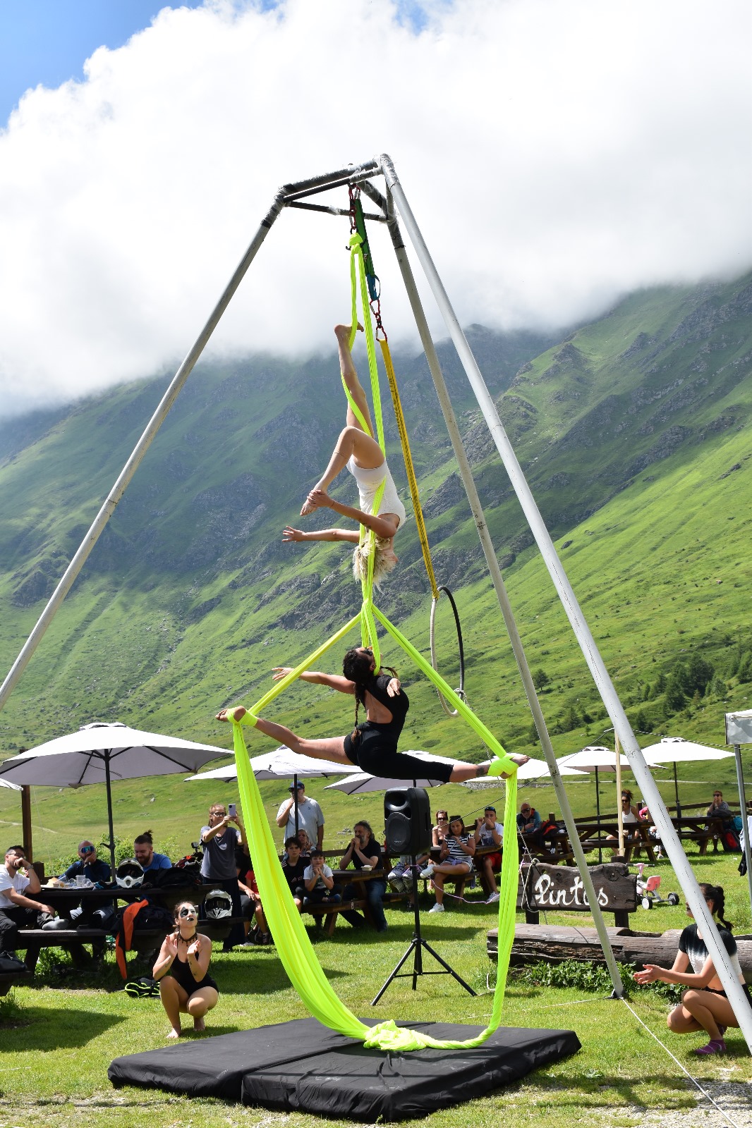 Uno spettacolo di danze aeree e terrene che trasforma in movimento le parole del poeta Remigio Berton. Accompagnata dal suono della ghironda e da ritmi frenetici; la performance invita a riflettere sullo spopolamento montano, cercando una scintilla di speranza tra il silenzio delle borgate. La bellezza del paesaggio, pur ferita, conserva ancora le tracce di una comunità e un segno di vita — une marque de vitte — pronto a rifiorire.