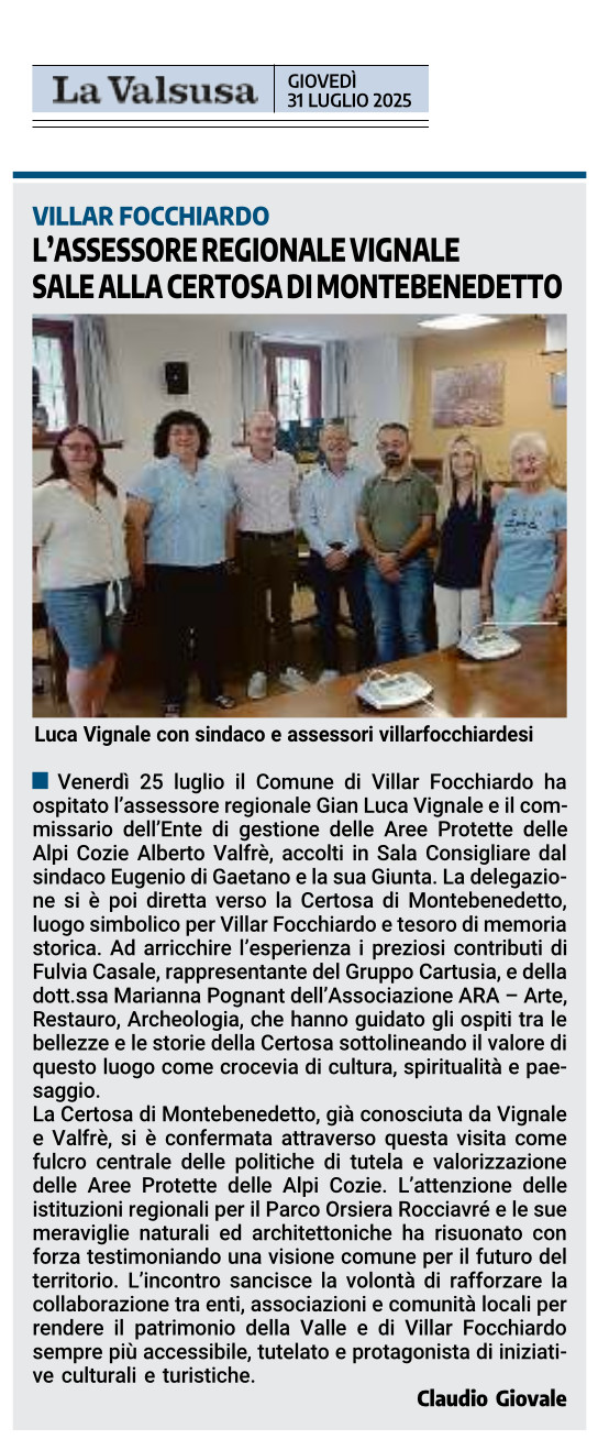 La Regione Piemonte valorizza il patrimonio storico delle Alpi Cozie con la visita alla Certosa di Montebenedetto