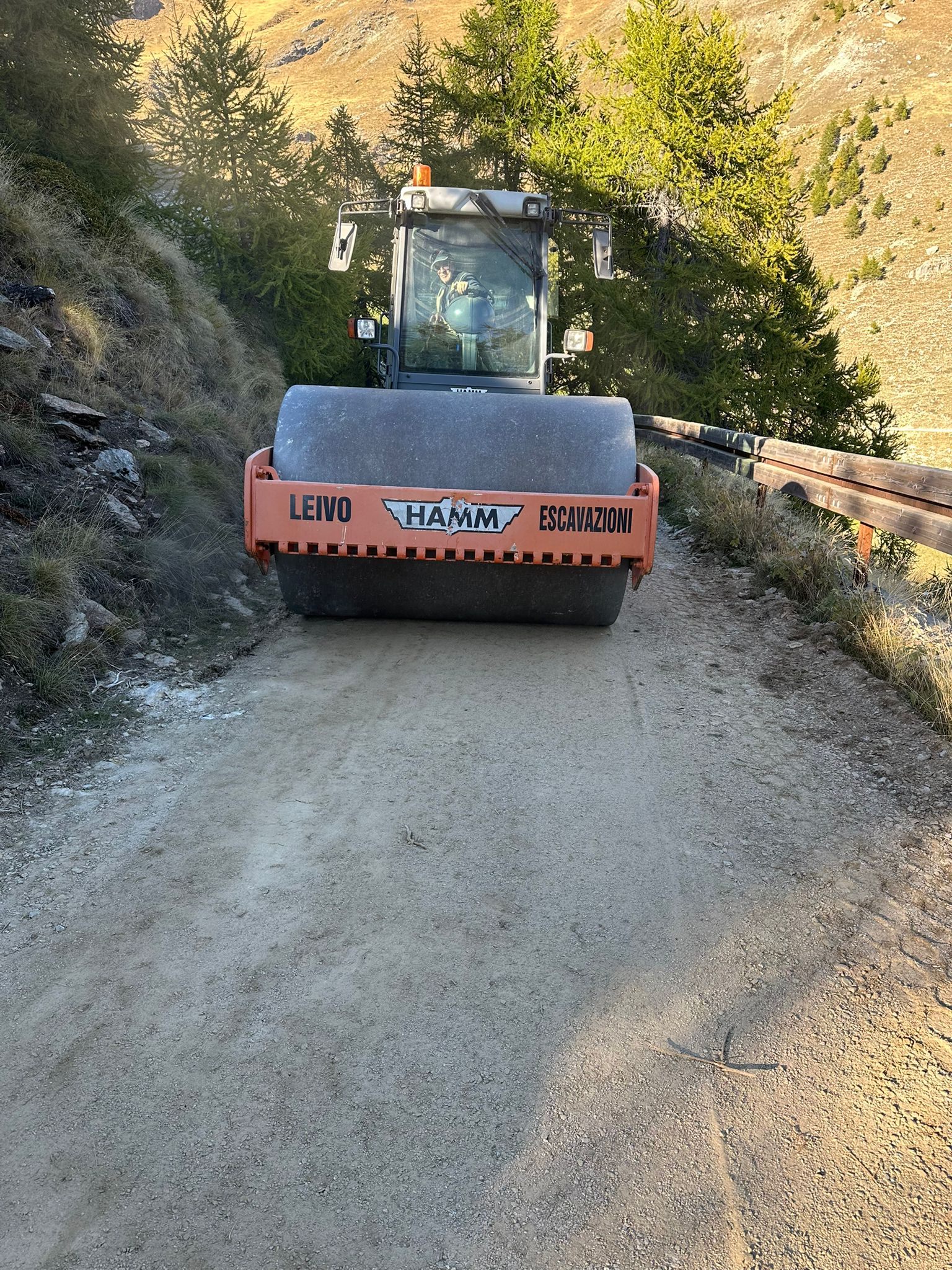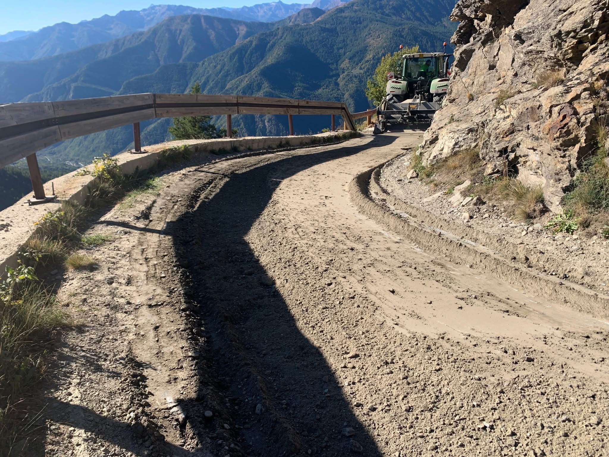 Attualmente, i lavori sono entrati nell’ultima fase che riguarda la sede stradale dove il sedime lungo l’intera tratta è in fase di rimaneggiamento con un intervento di fresatura e rullatura. Nelle zone soggette a maggiore dissesto ed erosione verranno realizzati due tipi di pavimentazione: un tratto sarà fatto in pietra locale disposta “di coltello” e un altro con una pavimentazione stabilizzata e drenante ecocompatibile per strade carrabili. Quest’ultima soluzione si configura come sperimentazione, su richiesta della Regione Piemonte, per valutarne l’effettiva efficacia nelle condizioni climatiche di montagna.
