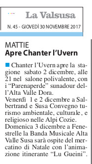 Da dicembre: Chantar l'Uvèrn