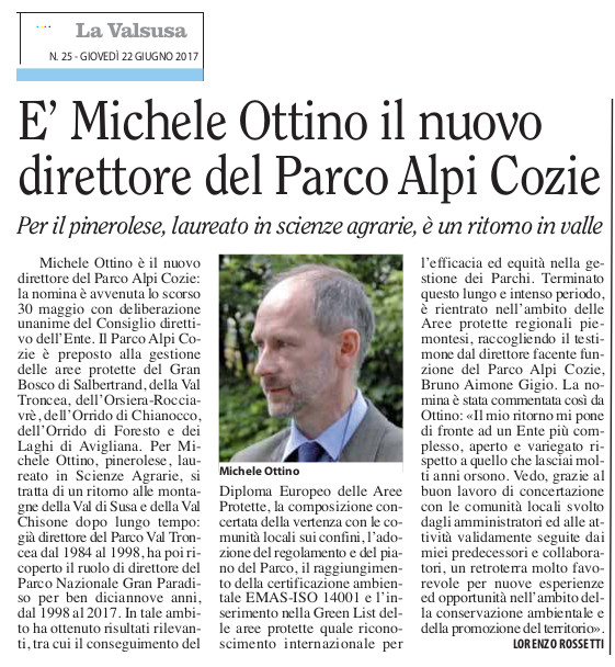 E' Michele Ottino il nuovo direttore del Parco Alpi Cozie