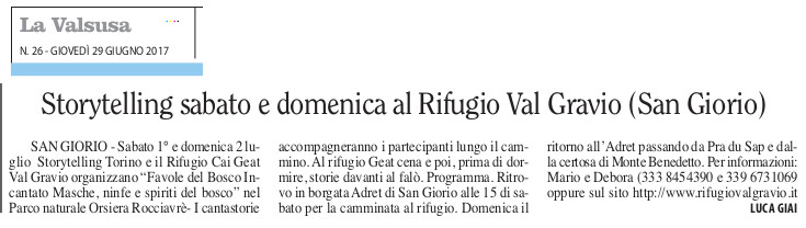 Storytelling sabato e domenica al Rifugio Val Gravio (San Giorio)